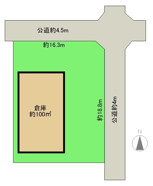 - 北側公道約4.5m、東側公道約4.0m